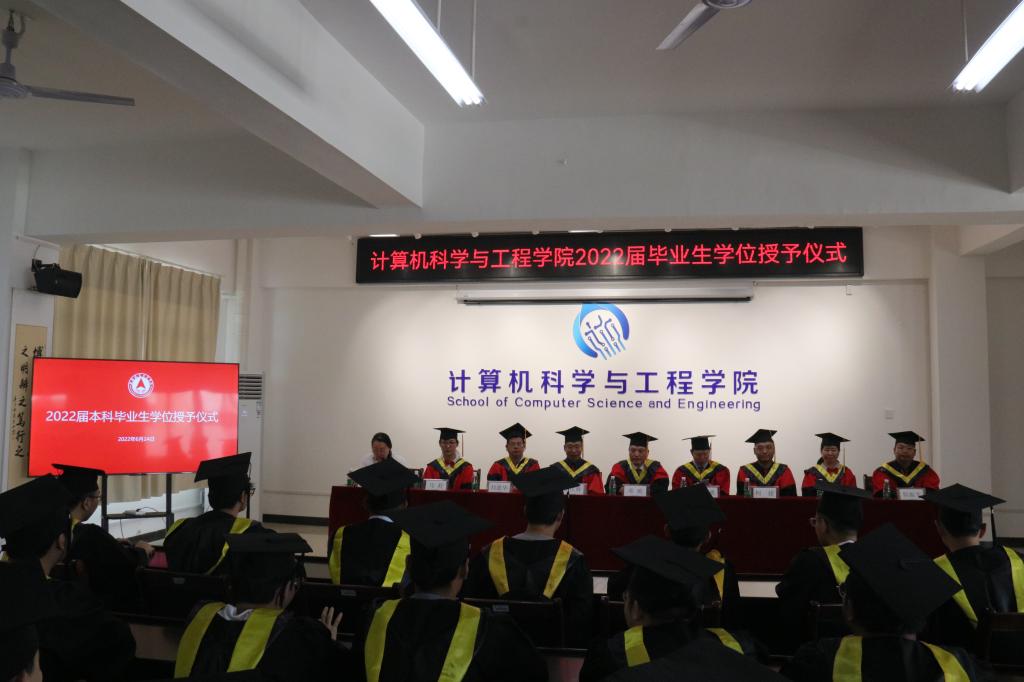 6月24日上午,70net永乐高2022届毕业生学位授予仪式在启天楼B335会议室举行,公司党政领导、各专业教研室主任、教授及毕业班辅导员、2022届在校毕业生参加本次活动。仪式由公司党委副书记刘莉湘君主持。