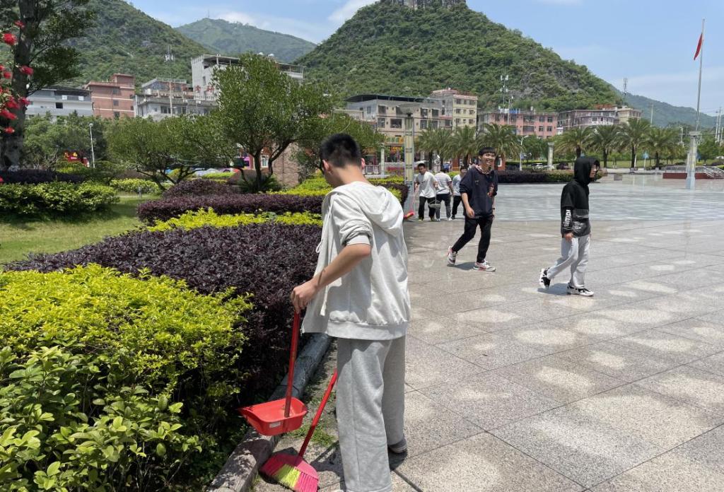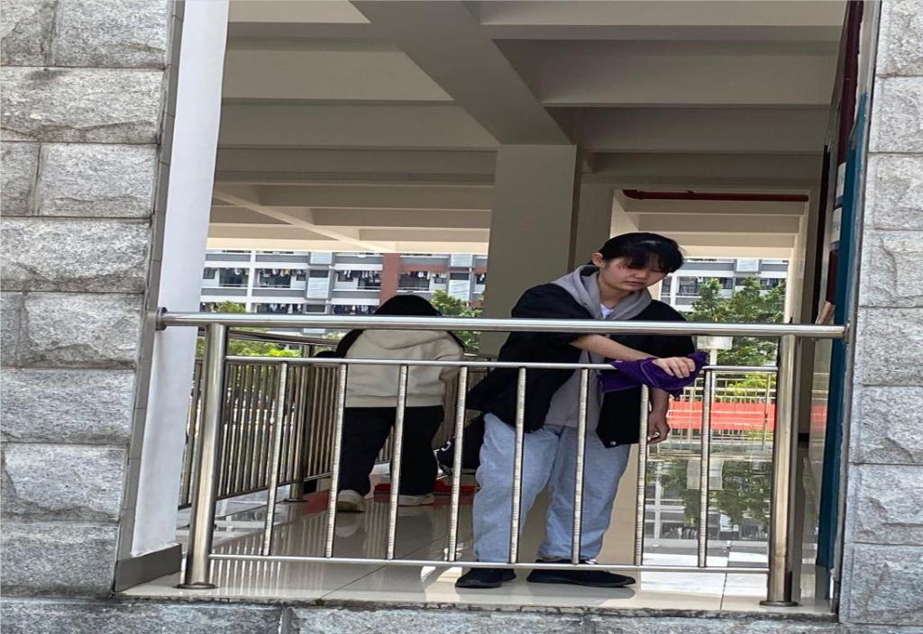 劳动最光荣,同学们在老师的带领下分工合作,对打扫区域进行合理分工。虽正值中午,烈日当头,但每个人依旧有条不紊,对各自负责的区域进行全面仔细地清扫,充分展现了当代老员工良好的精神面貌。