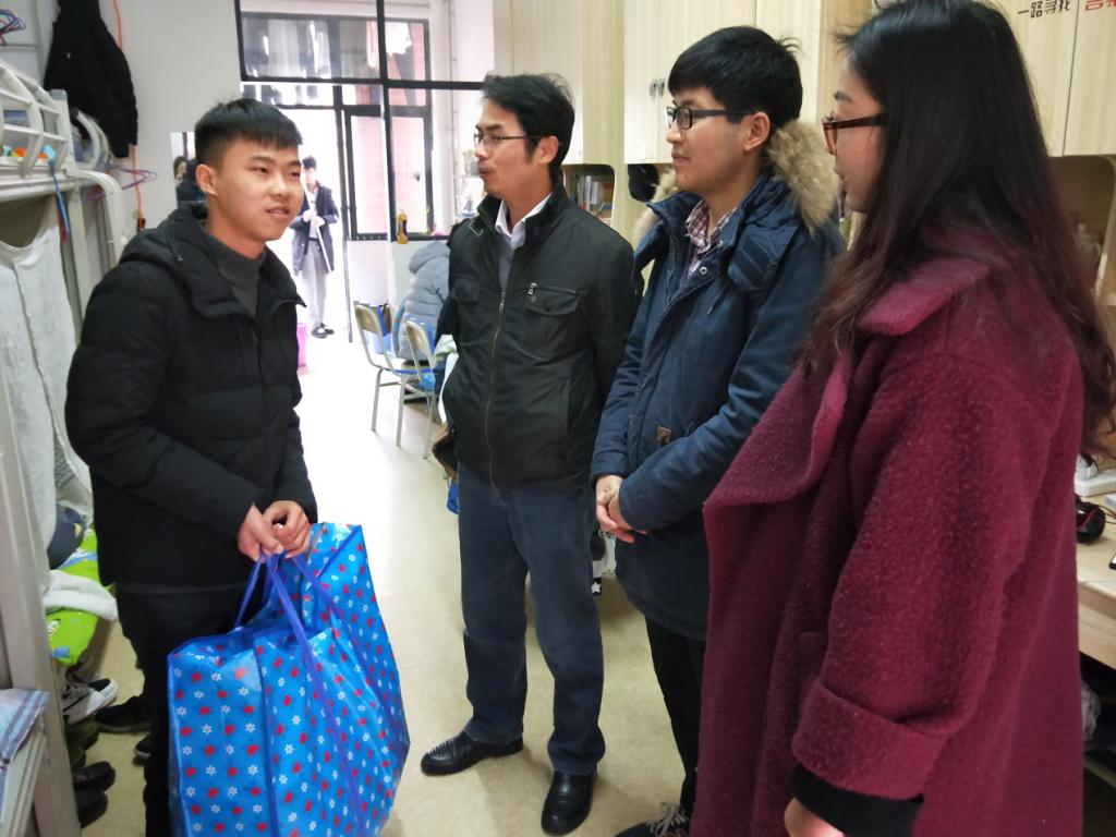 为了帮助在校贫困员工解决实际困难,切实体现公司对家庭经济困难员工的关怀,2018年1月15日—1月16日,在公司党总支副书记刘新良的带领下,由公司分团委书记、各年级辅导员组成的“寒冬送温暖”慰问小组来到家庭经济困难员工所在宿舍,对同学们进行慰问,并给同学们送去保暖衣物和被褥等慰问品。