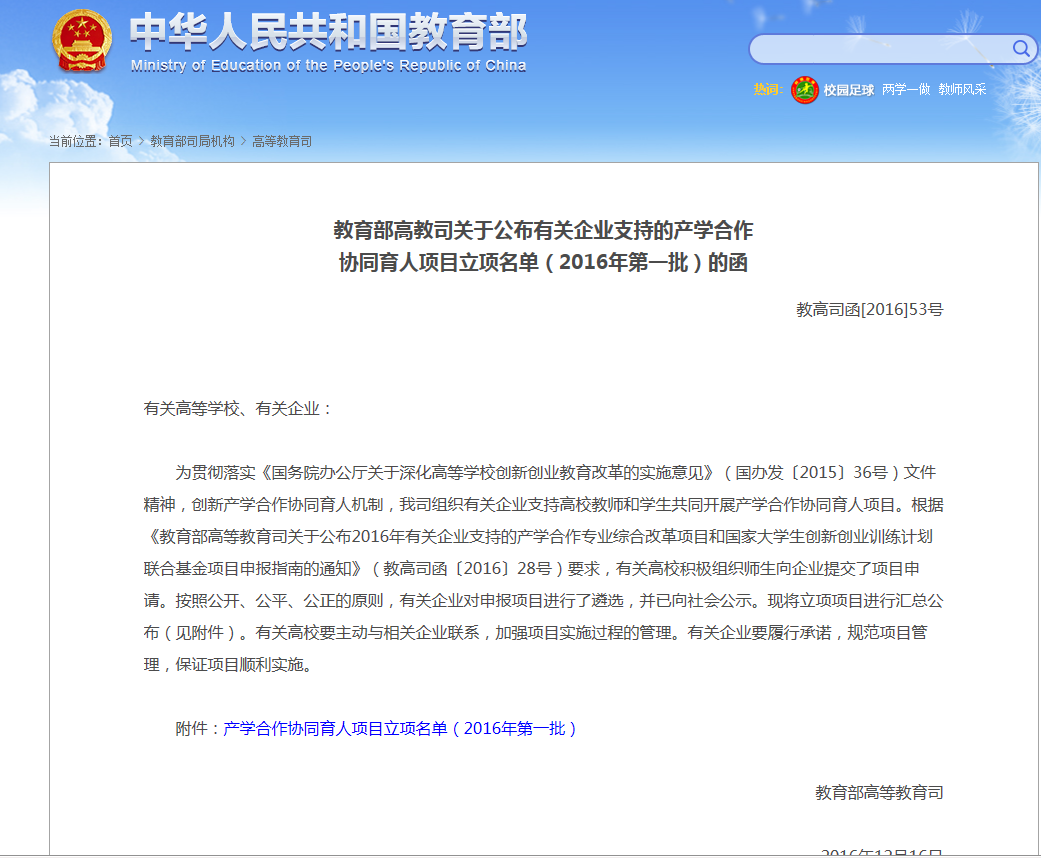 日前,教育部高教司公布了2016年有关企业支持的产学合作协同育人项目立项名单(教高司函[2016]53号),我系柯捷老师申报的“思科—桂航物联网产教融合协同育人项目”成功获批为教育部产学合作协同育人项目。该项目由公司与全球领先的网络解决方案和互联网设备供应商思科公司深度合作,项目的实施将建立多角度、全方位的校企合作新模式,着力培养更好适应地方产业发展需要的高素质应用型人才,是公司在产学合作育人方面取得的又一重大进展。