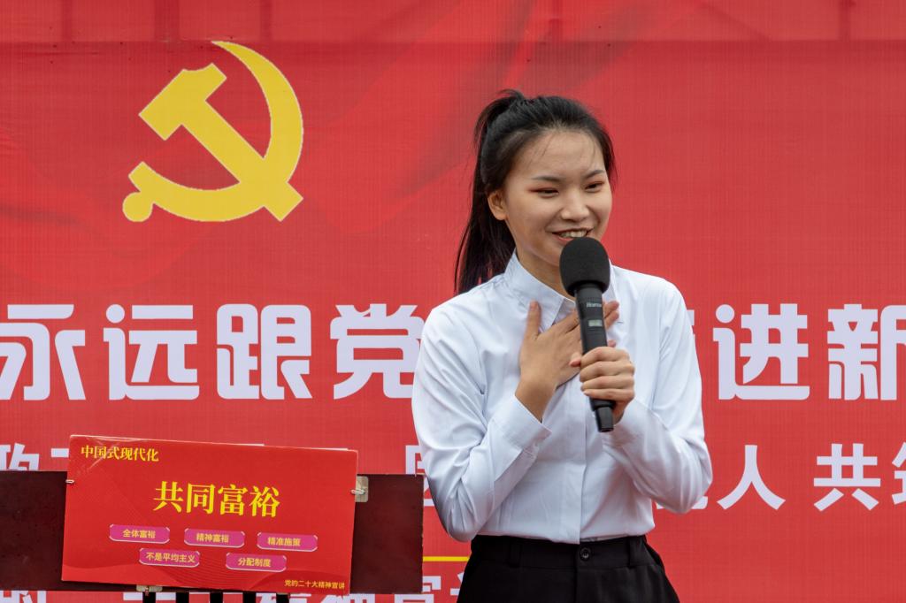 本次活动共有5名宣讲员,围绕人口庞大、共同富裕、和平发展、和谐共生、物质文明和精神文明五个方面分享了对中国式现代化的理解。宣讲员冯光龙讲到人口庞大发展时,提到人口规模巨大环境中需要高质量发展、科教兴国和文化创新;同时社会保障,包括社会保险、社会救助、社会优抚和社会福利等内容也要相适应的同步发展。宣讲员王怡同志讲共同富裕时,把社会财富比作一个蛋糕,形象地阐述了要确保每个人都能享受到美味的蛋糕,首先是共同参与发展把蛋糕做大,然后是不断完善与社会发展相协调配套的分配制度。宣讲员张李明同志讲和平发展时,从自己保卫国家和平的军旅生涯讲起,倡导全体国民树牢国家安全观,在确保和平稳定的前提下,发扬中华民族“和”的优秀文化思想,推动构建人类命运共同体,与世界共建共享,和平发展。宣讲员杨慧慧讲和谐共生发展时,提到桂林人民视桂林山水如金山银山,成立了生态环保分局,成立生态保护志愿组织等措施持续深化生态环境治理,不断推进生态保护与富民利民双赢的和谐共生发展。宣讲员纪浩俊同志讲物质文明和精神文明协调发展时,把物质文明与精神文明的协调展比作是身体和灵魂的互相依存、协调发展的关系。号召桂航学子发扬航天精神,不断提高文化自信。