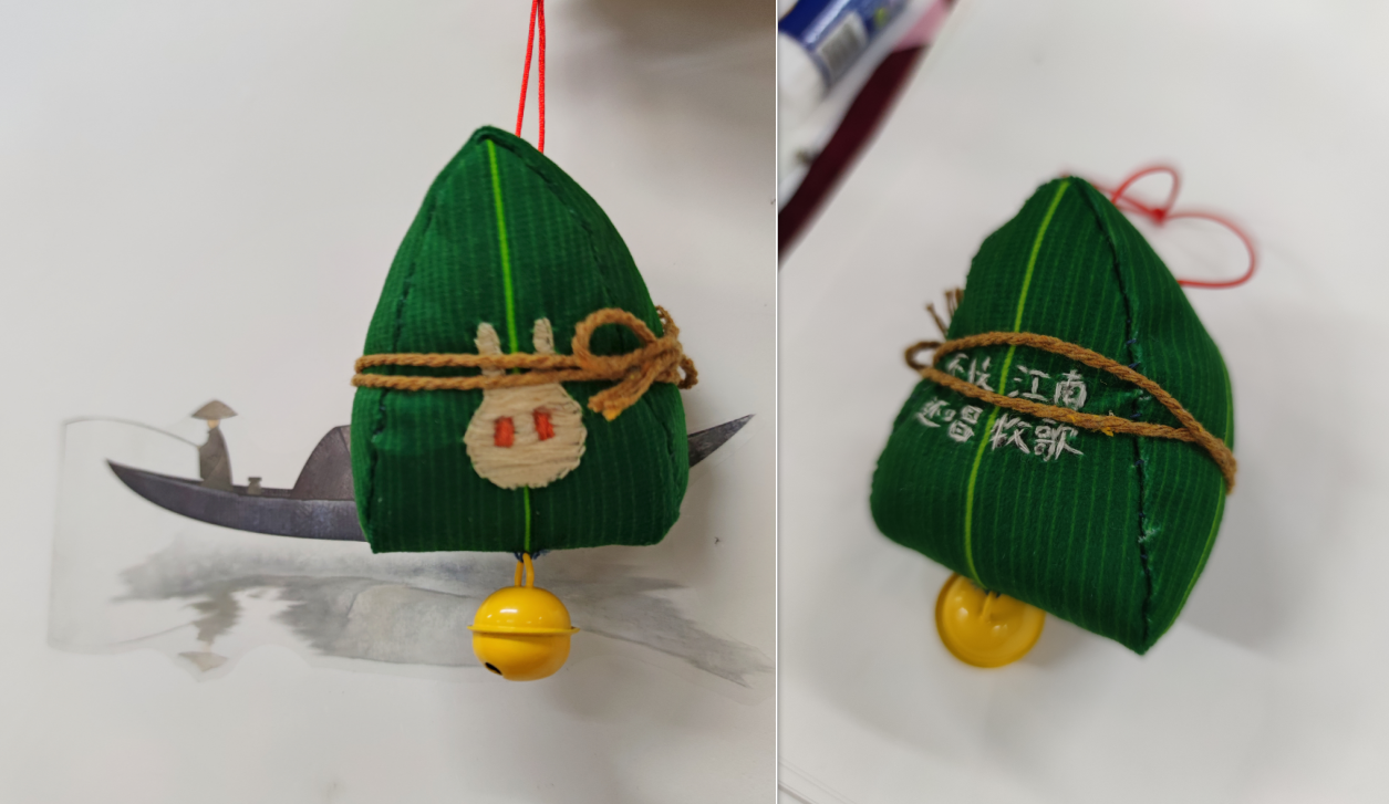 两千多年前,中国民间就有佩戴香囊避除秽恶,确保自身健康的民俗香囊。香囊中的“香”常用的多是芳香开窍的中草药,有清香、驱虫、避瘟、防病的功能。同学们将艾草装进香囊,按照图纸制作成碧绿诱人的“粽子”,并在作品中巧妙融入各类元素:可爱的兔子寓意超越自我、迈向成功、心想事成;原创诗句“不忮江南,还唱牧歌”表达了热爱和赞美故乡的情感;一针一线绣上的党旗和“100”可谓是“红旗擎天地,妙手绣香囊”。活动最终评选出一等奖1名,二等奖3名,三等奖3名,优秀奖4名。