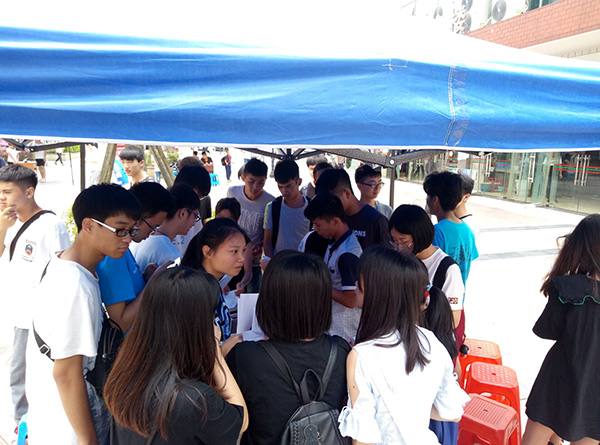(图为获奖的同学在登记信息)